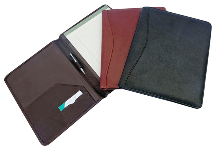 Imprinted pad holders at wholesale prices. Custom printed A4, legal, letter, leather pad holders. We also offer inexpensive faux leather and vinyl pad holder covers. Call today for a factory direct quotation !